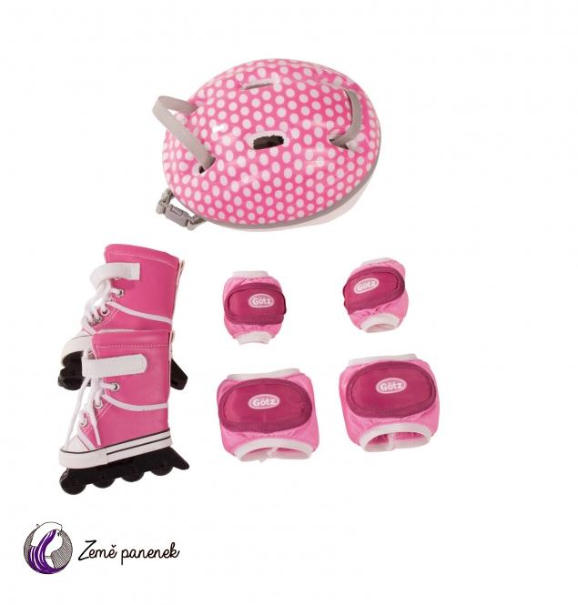 Jednoduše skvělá sada inlinerů pro Vaši panenku Götz. Nasaďte si inlinery, nasaďte si helmu – bezpečnost především – a pak si nasaďte chrániče kolen a loktů. Nyní už Vás nic nezastaví ve Vašem výletu. Vhodné pro panenky ve velikosti 45 - 50 cm.