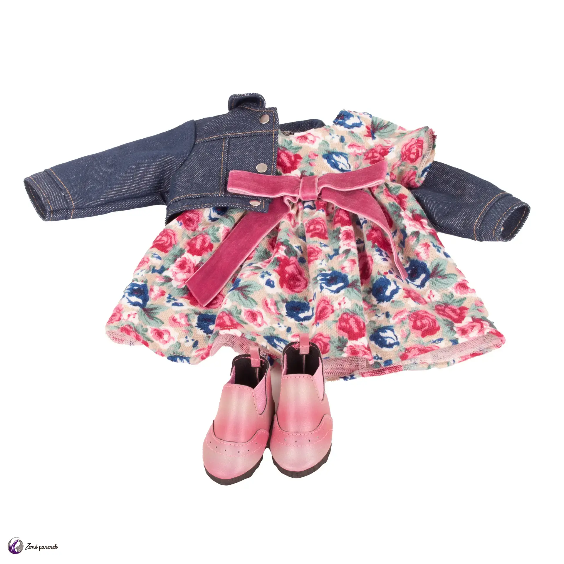 Sada obsahuje: Džínovou bundu, šaty a boty.