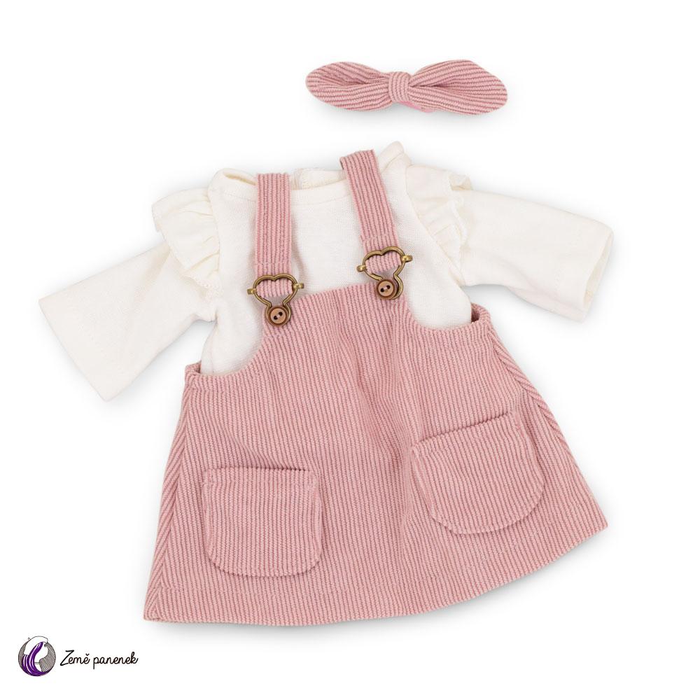 Obleček obsahuje bílou halenku, manšestrovou laclovou sukni a mašličku.