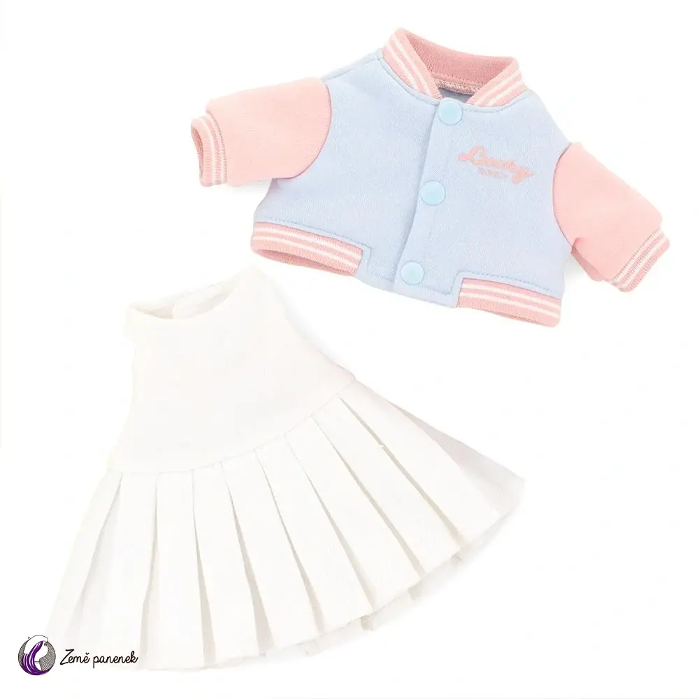 Obleček obsahuje šatičky a mikinu. Volně v krabičce je přidána i malá gumička do vlasů.